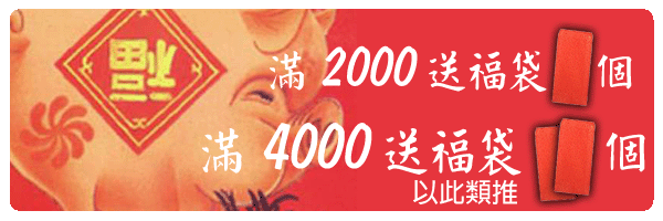 即日起,只要在網站上購買產品超過2000元,就送福袋一個(限量30個),滿4000送福袋2個,以此類推。
