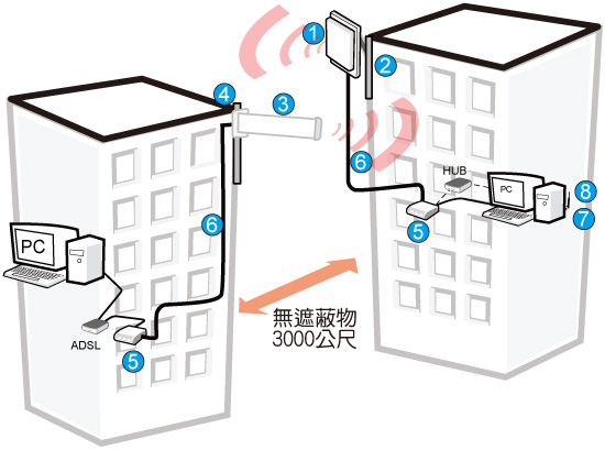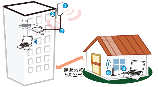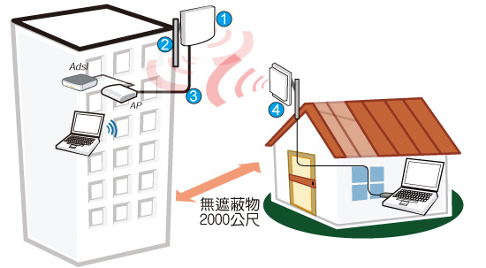 適用:訊號端有ADSL網路,接收端沒有網路直接用訊號端提供的無線網路使用。