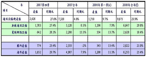 | 08年首季台灣通訊設備業產值達1,750億台幣 |