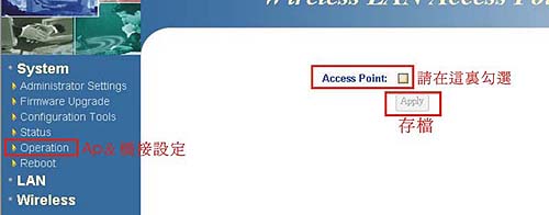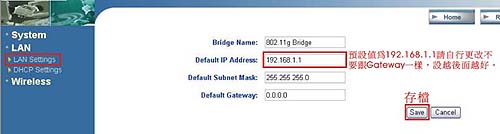 ,原預設值為橋接模式192.168.1.1,AP模式為192.168.1.2,只要是設定AP或橋接請吧預設LAN改為越後面IP