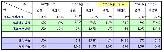 2008年上半年台灣通訊設備產業成長17.3%